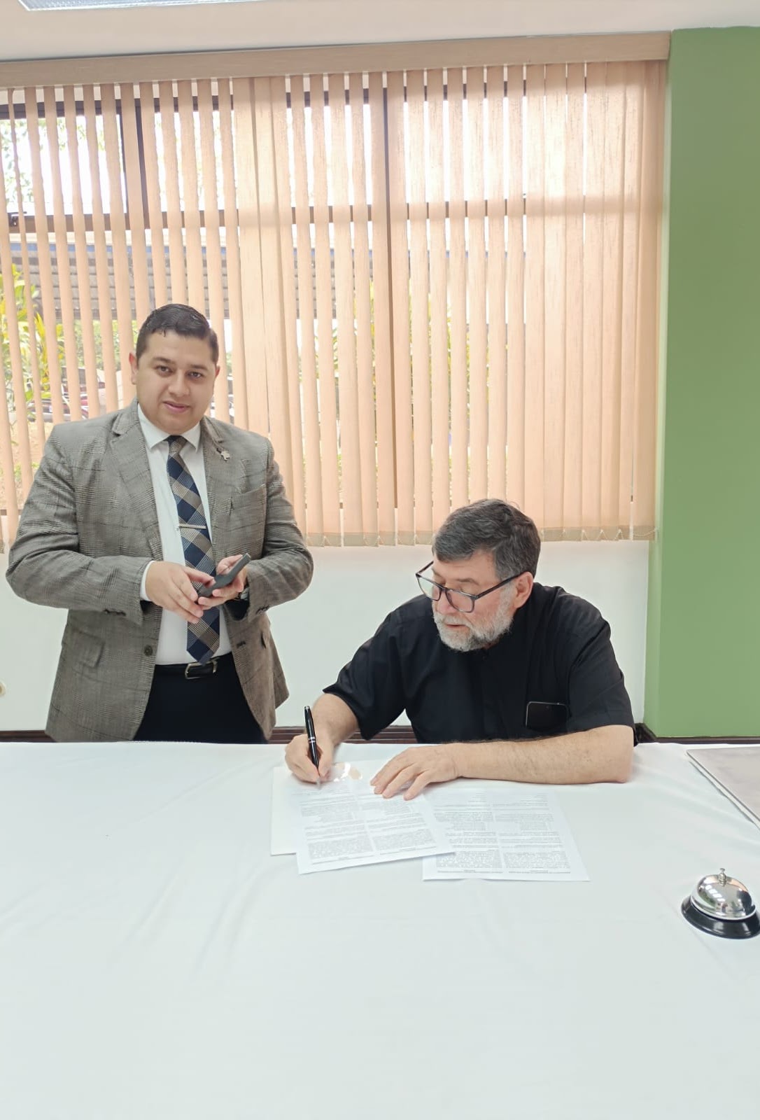 La firma estuvo a cargo del Pbro. Carlos M. Céspedes Bolaños, Vicario General y Moderador de Curia, en representación de la Diócesis de Alajuela, y de Spencer Milian, en representación de FamilySearch Internacional.